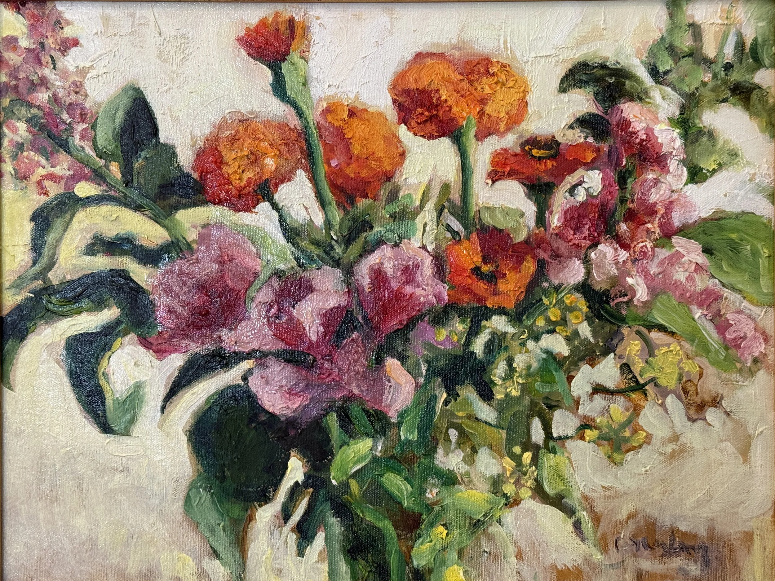 "Marigolds, Godetia" - Carol Steinberg - Oil - 14" x 18" - $1'200